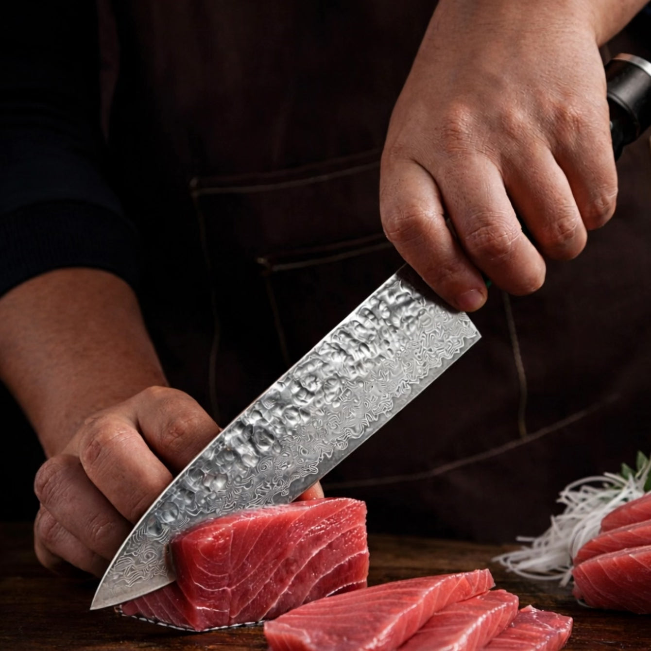 Nasza klinga składa się z 67 warstw i osiąga 60±2 HRC, co oznacza większą stabilność krawędzi i wolniejsze zużycie ostrza.